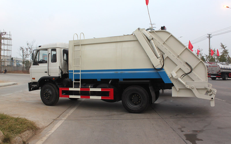 東風153壓縮式垃圾車整車配置:東風153底盤,玉柴170馬力或者康明斯190馬力發(fā)動機,4500mm軸距,10.00尼龍?zhí)?,帶方向助力?2方垃圾箱體,箱體材料厚度邊三底四。